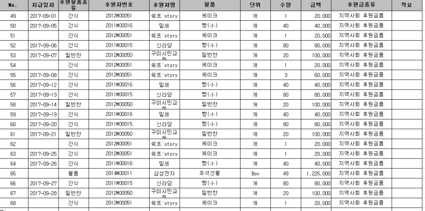 2017년 9월 후원물품 후원 작성일 2017.10.10 11:28 본문 (2017.10.10) [이 게시물은 은빛재가님에 의해 2020-03-18 16:08:01 소식지에서 이동 됨] 목록 이전글2017년 10월 후원금 2017.11.02 다음글2017년 9월 후원금 2017.10.10