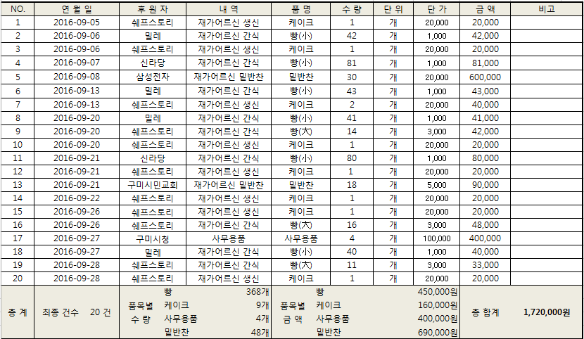 2016년 9월 후원물품 후원 작성일 2016.10.04 10:11 본문 (2016.10.04) [이 게시물은 은빛재가님에 의해 2020-03-18 16:08:41 소식지에서 이동 됨] 목록 이전글2016년 10월 후원물품 후원 2016.11.02 다음글2016년 8월 후원물품 후원 2016.09.02