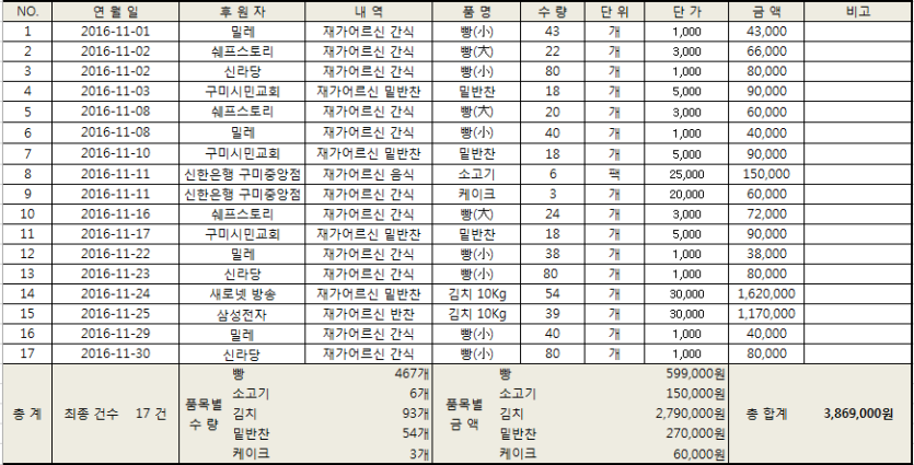 2016년 11월 후원물품 후원 작성일 2016.12.05 10:12 본문 (2016.12.05) [이 게시물은 은빛재가님에 의해 2020-03-18 16:08:41 소식지에서 이동 됨] 목록 이전글2016년 7월 후원금 2016.08.02 다음글2016년 10월 후원물품 후원 2016.11.02