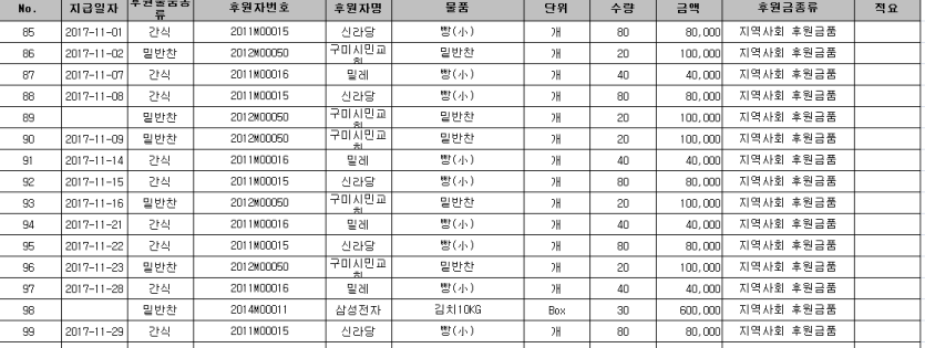 2017년 11월 후원물품 후원 작성일 2017.12.04 11:34 본문 (2017.12.04) [이 게시물은 은빛재가님에 의해 2020-03-18 16:08:01 소식지에서 이동 됨] 목록 이전글2017년 12월 후원금 2018.01.04 다음글2017년 11월 후원금 2017.12.04