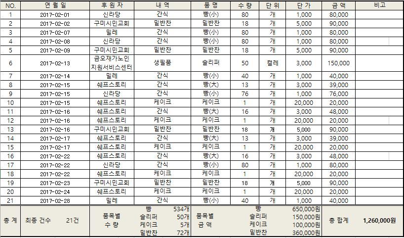 2017년 2월 후원물품 후원 작성일 2017.03.03 10:20 본문 (2017.03.03) [이 게시물은 은빛재가님에 의해 2020-03-18 16:08:21 소식지에서 이동 됨] 목록 이전글2017년 3월 후원물품 후원 2017.04.03 다음글2017년 1월 후원물품 후원 2017.02.03