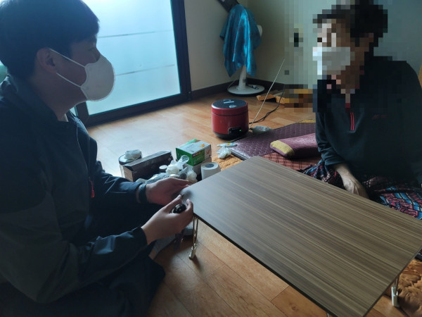 당초 밥상없이 바닥에서 식사하시던 어르신 또는 기존 밥상이 낡아 교체가 필요한 어르신을 전수조사하여 총 15명에게 밥상을 지원해드렸습니다. 바닥에 종이를 깔고 식사하시던 어르신들은 밥상이 생겨 편하다며 좋아하시고, 낡은 밥상을 쓰시던 어르신들은 오래된 밥상 아껴서 뭐하겠냐 하시며 미련없이 새 밥상으로 교체하셨습니다.