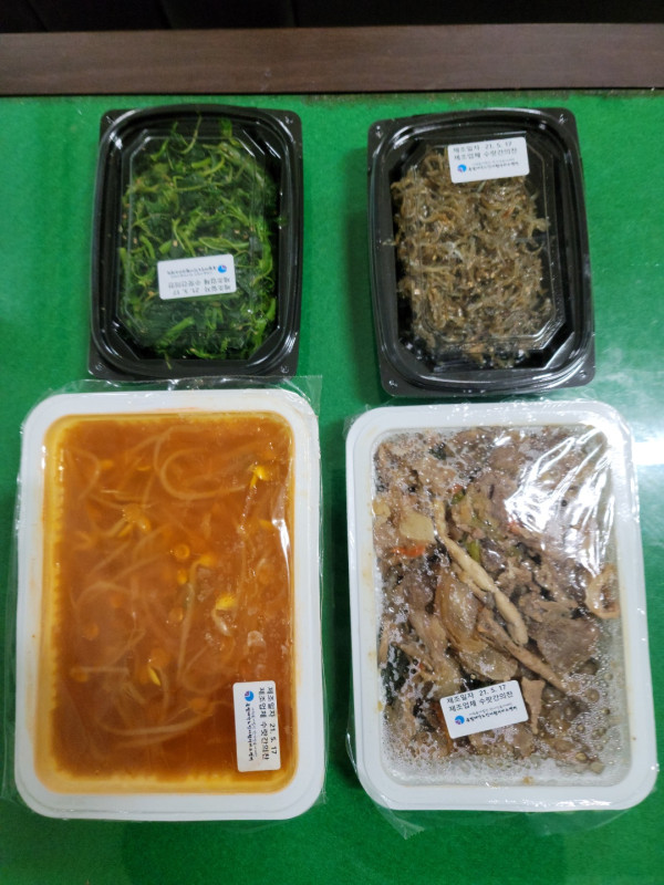 <비름나물, 멸치볶음, 돼지불고기, 김치콩나물국>입니다.