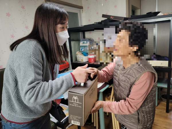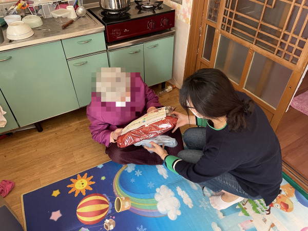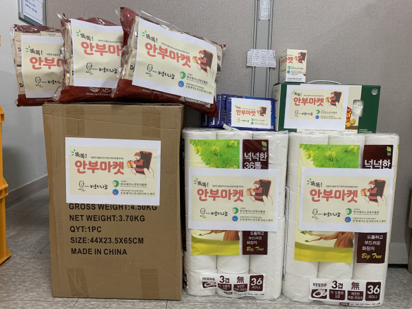 코로나19로 외출이 꺼려짐에 따른 외로움과 우울감, 사회적 고립이 심화된 본 기관 이용어르신들에게 '똑똑! 안부마켓' 캠페인을 통해 안부를 묻는 등, 주위를 둘러보는 시간을 가졌습니다. (재)바보의 나눔과 (사)한국재가노인복지협회를 통해 지원받은 도시락김 3세트, 두유 1박스, 영양제 1개, 간편식 1세트, 제철과일 1묶음, 파스 8개, 휴지 2묶음, 보행보조기 1개를 총 19명의 어르신께 지원해드렸습니다.