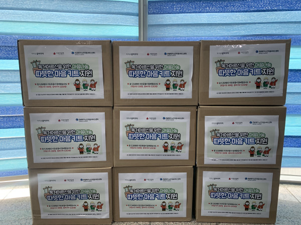 그 결과, 이용 어르신 102명 전원에게 온수찜질기, 내복, 마스크 50매, 삼계탕, 누룽지 등이 담긴 마음키트를 전달할 수 있었습니다.