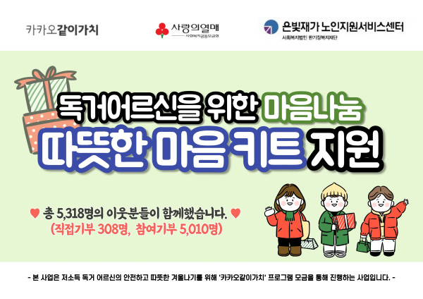 ★ 본 사업은 저소득 독거 어르신의 안전하고 따뜻한 겨울나기를 위해 '사회복지공동모금회', '카카오같이가치'가 함께합니다. ★